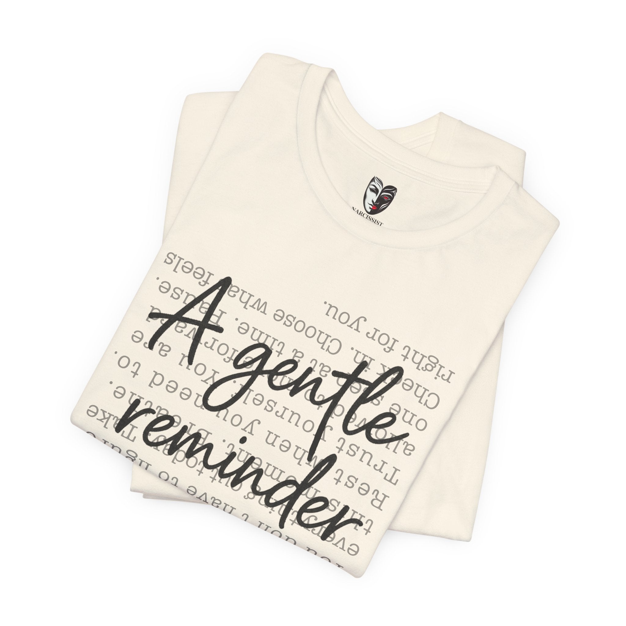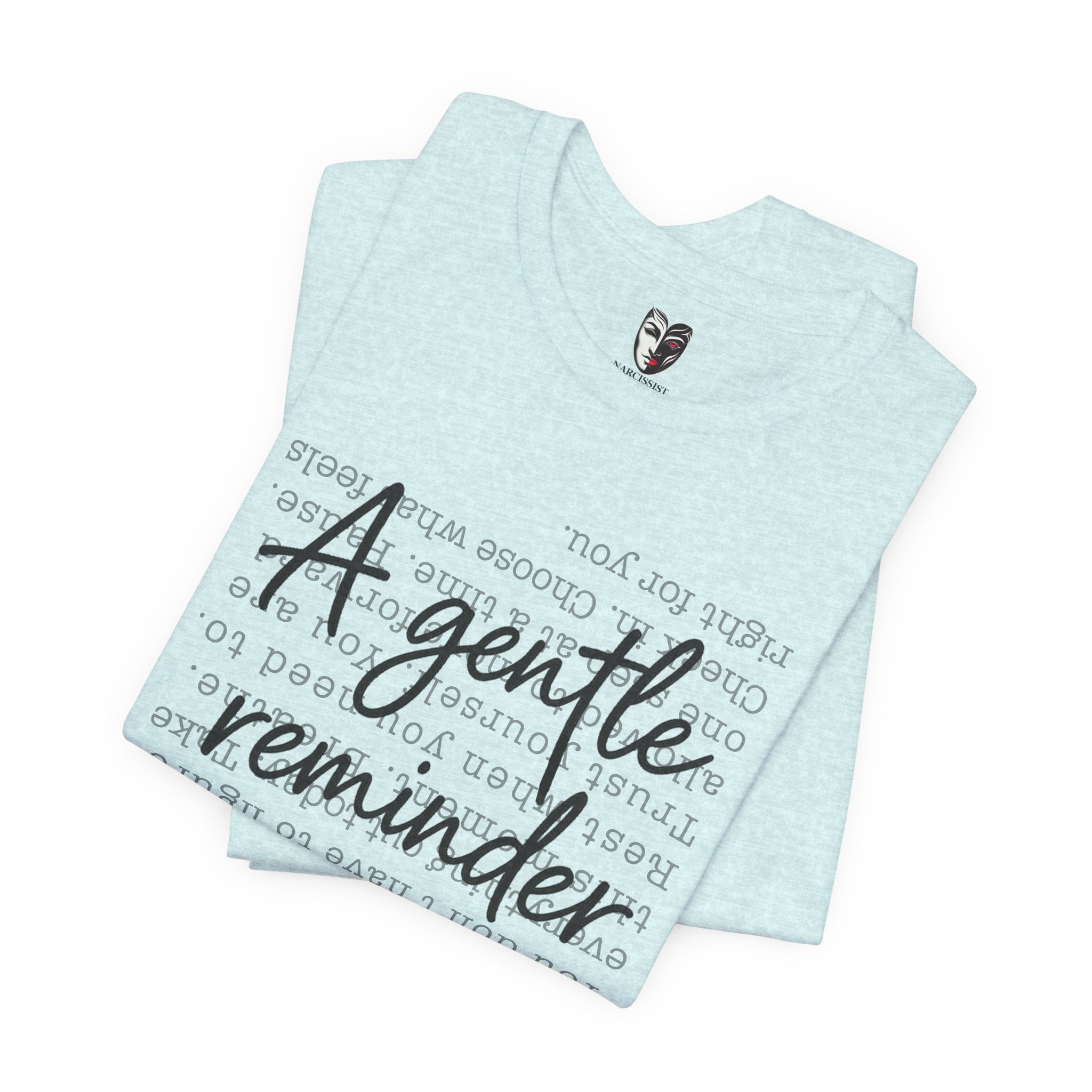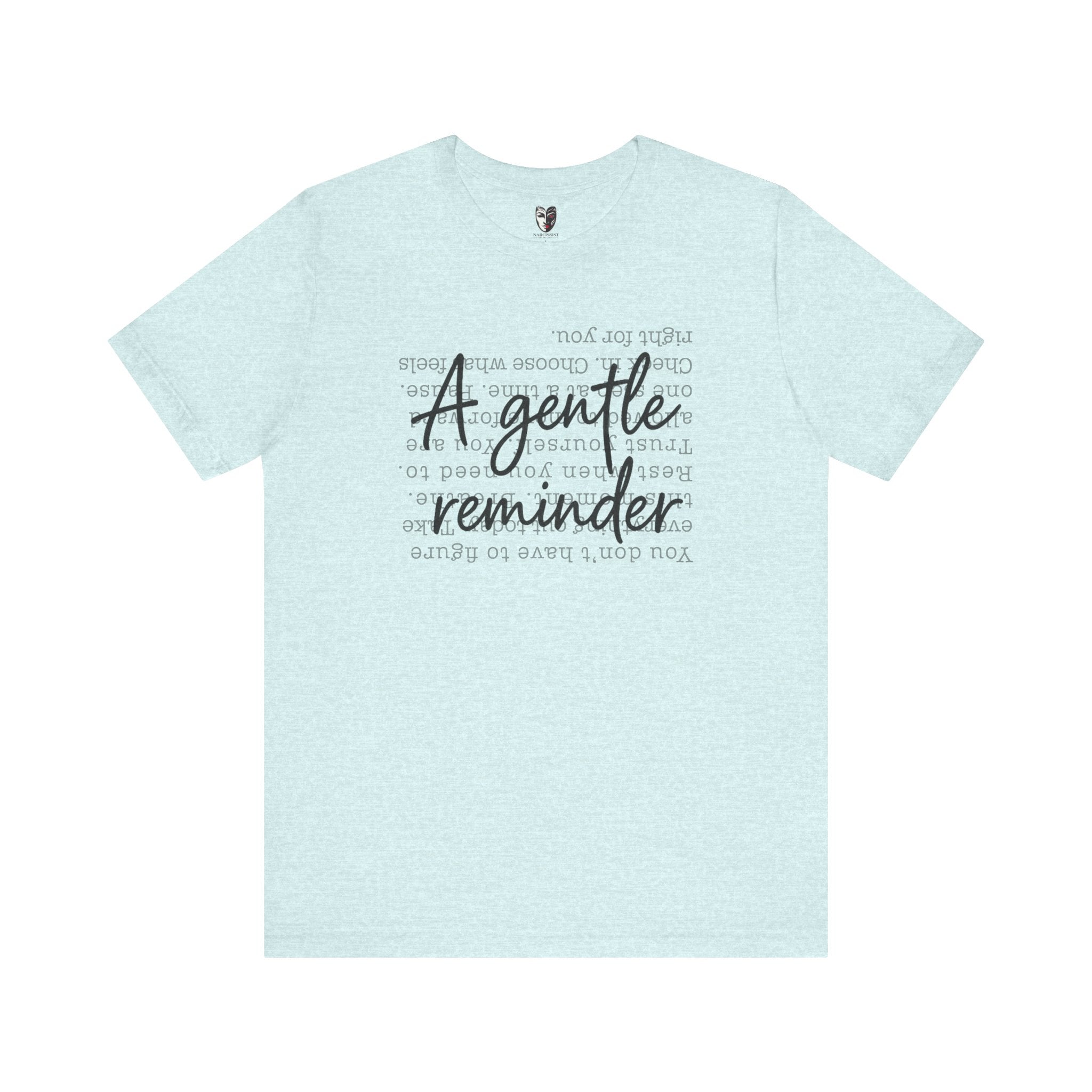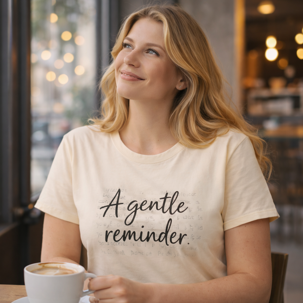 A gentle reminder you carry with you. This inspirational script t-shirt features delicate hand-lettered "A Gentle Reminder" messaging – subtle enough for everyday wear, meaningful enough to shift your energy when you need it most.