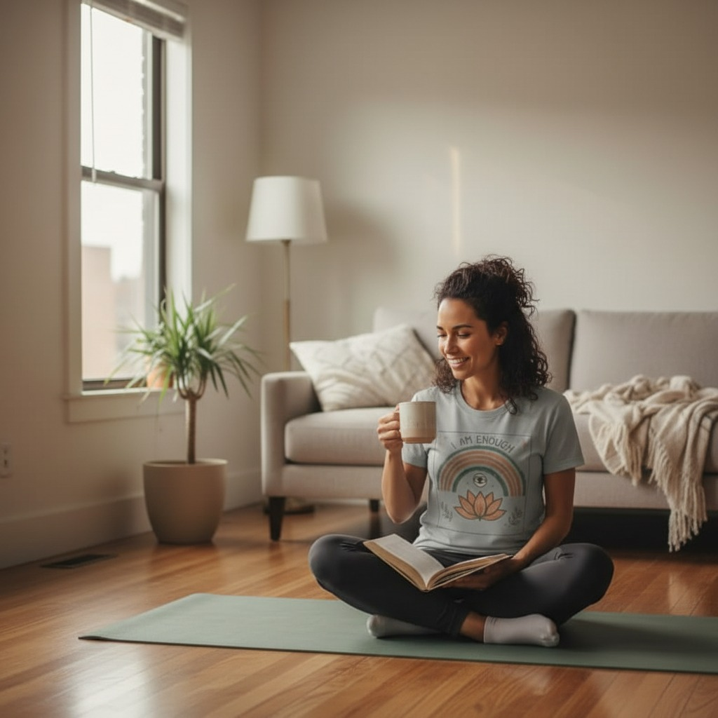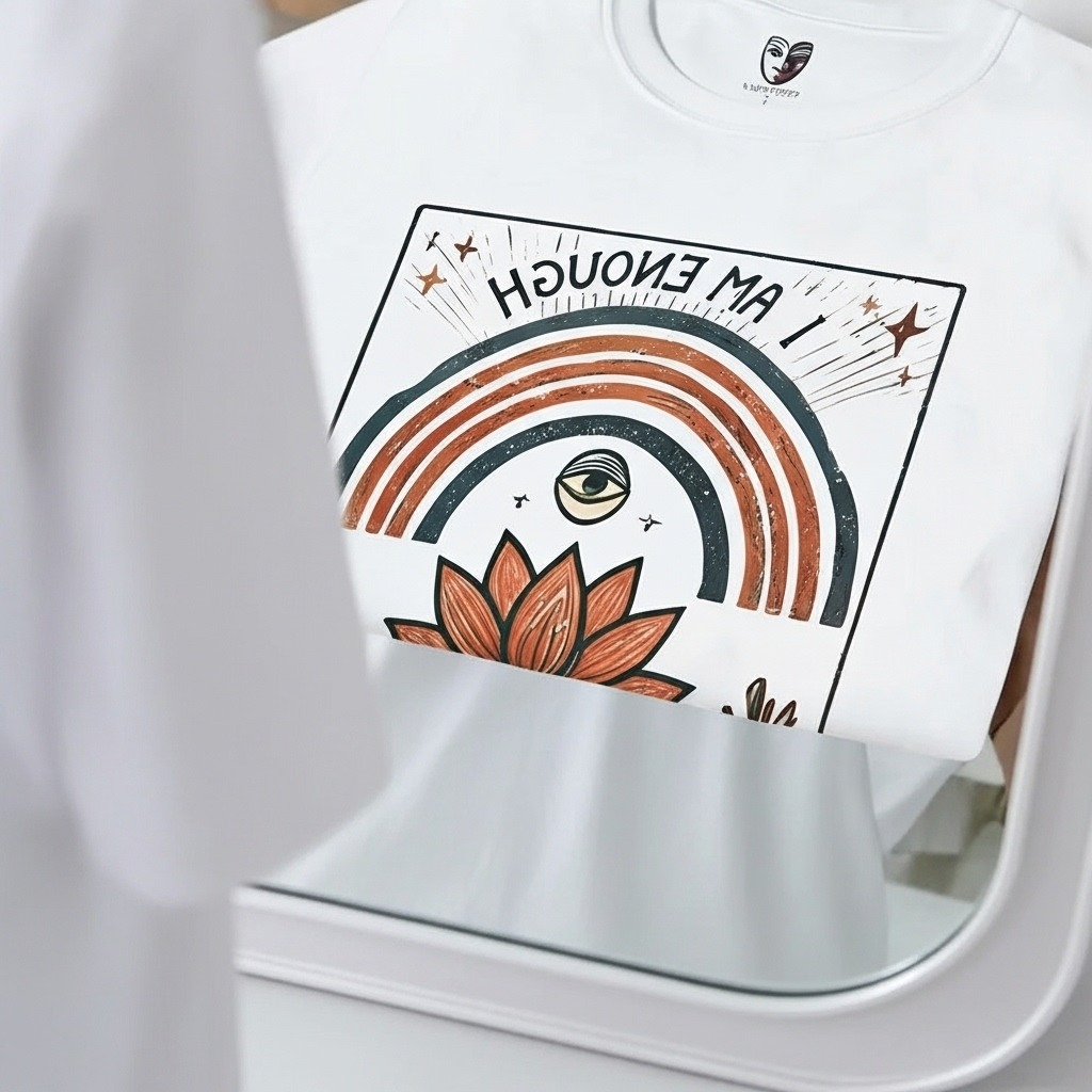 Mirror-read reversed text: “I Am Enough.”