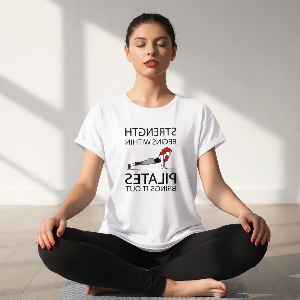 Fuel your fitness journey with our Inspirational Pilates T-Shirt. An inspirational t-shirt to encourage exercise and yoga. This premium cotton-blend tee combines uplifting affirmations with artistic graphics, creating wearable inspiration for your Pilates, yoga, and mindfulness practices. Comfortable fit and breathable fabric, mainly used for workouts and meditative movements. Each design carries empowering messages that resonate with healing, strength, and self-trust, perfect for survivors, wellness seekers, and mindful movers.