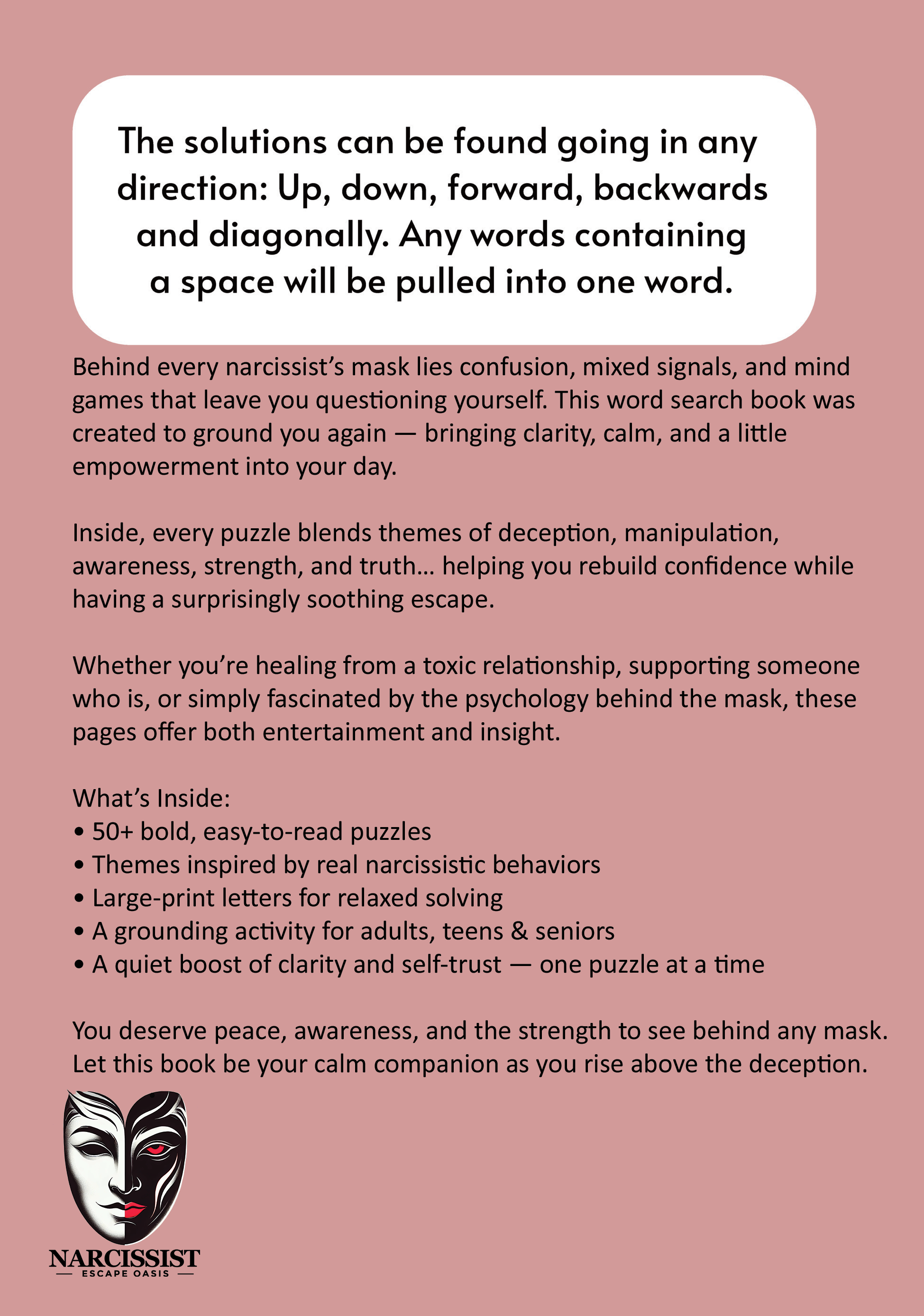 Narcissist Masked Figure Word Search Book Healing Puzzle Book for Mental Clarity & Emotional...