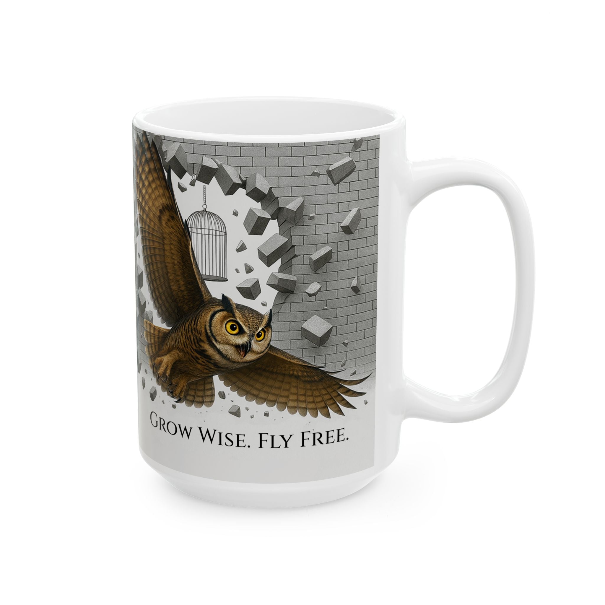 Grow Wise Fly Free Owl Mug Inspirational Healing Coffee Mug for Wisdom, Calm &...